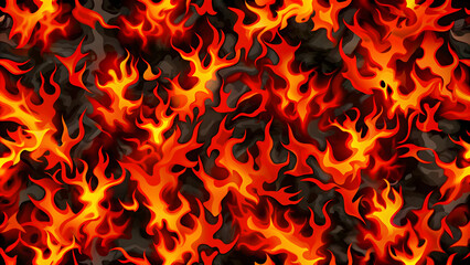 Fiery camouflage pattern of red and black flames, fire, camouflage, pattern, red, black, flames, heat, intense, design, vibrant