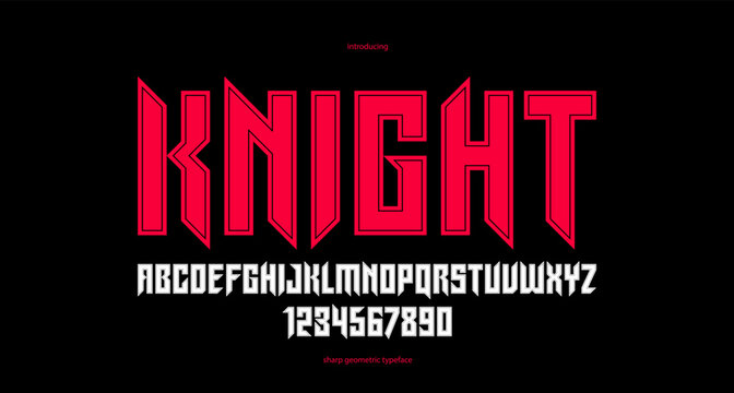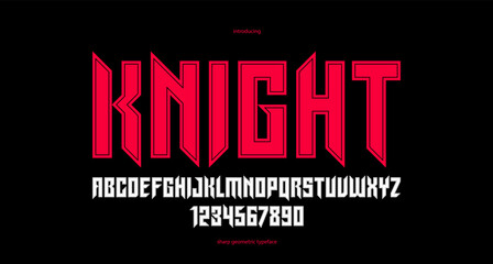 Sharp and bold gothic font for logo creation of for headlines, edgy geometric modern vector typeface, heavy metal and hard rock style alphabet with numbers.