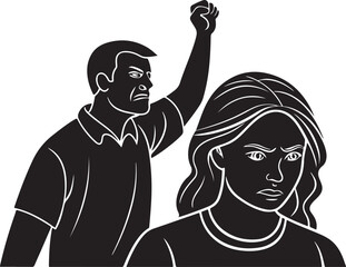 Vector Silhouette of Domestic Violence Concept with Woman Defending Against Aggressor