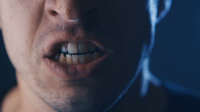 Close-up mouth of Aggressive Man screaming. Danger Violence. Angry man Shouting with Mouth wide open.