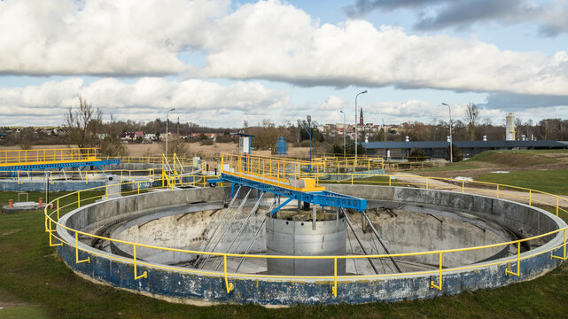 empty fermentation pool with automatic agitator at the biological sewage treatment plant