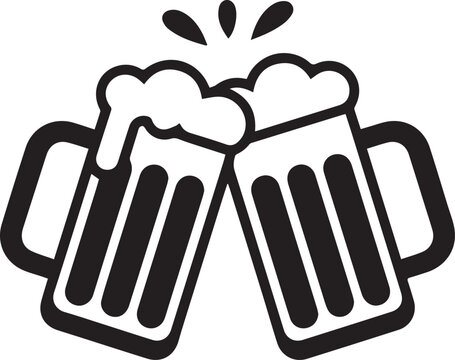 A celebratory image of two full beer mugs clinking together