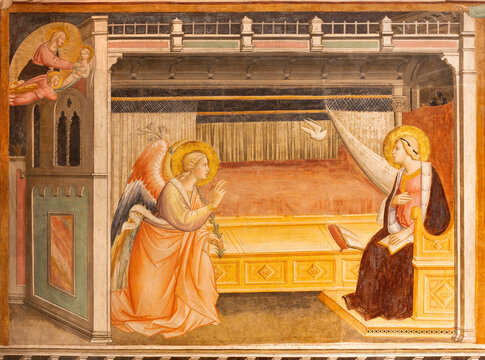 Prato - The fresco of Annunciation in Cathedral - Duomo - Cattedrale di Santo Stefano by Agnolo Gaddi (1350-1396).