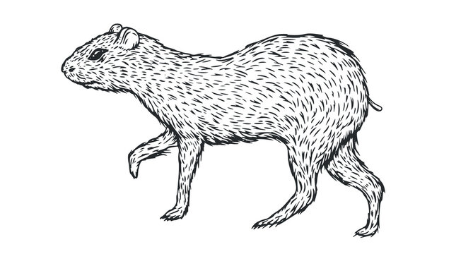 Hand drawn agouti in monochrome sketch style. Animal south america isolated on white background. Vector vintage illustration.