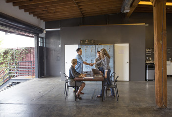 Business people shaking hands in office meeting