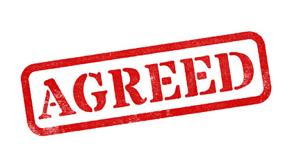 Agreed red rubber stamp isolated on transparent background with distressed texture effect