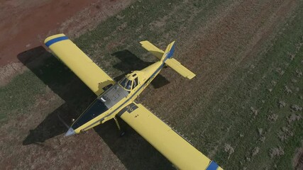 Agricultural aircraft Drone 4k runway grass Agriculture aircraft taxiing image from above