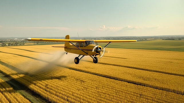 An agricultural aircraft plane watering a field during the daytime Generative AI