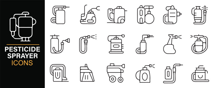 Editable agricultural pesticide sprayer icons for farming and pest control