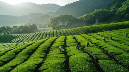 Scenery of the tea plantation in Obuchi Sasaba, Fuji City, Shizuoka Prefecture.