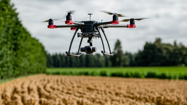A drone monitoring agricultural fields for crop management growth observation and fertilization. Concept Agriculture, Drones, Crop Monitoring, Precision Farming, Fertilization