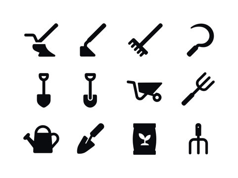 Agricultural Tools Icons. Agricultural tools. Solid icon set of
