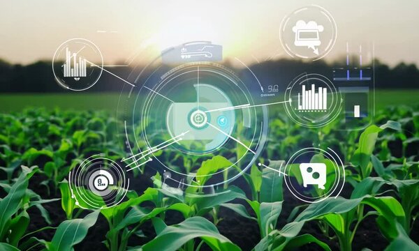 agriculture smart farming technology - industry 4.0.Concept of Harvesting and Planting with Technology and smart farming.