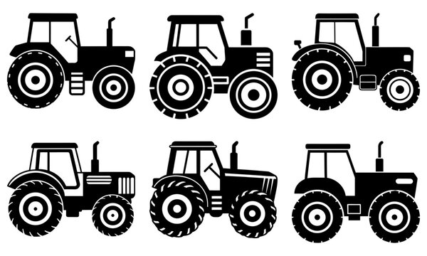 Six Black Tractors Silhouettes on White Background farm agriculture 4