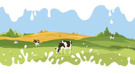 Cows red jersey with automatic collar. Banner modern farm dairy and meat production livestock industry
