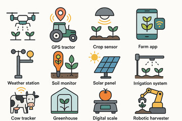 Smart farming icons: technology for modern agriculture automation