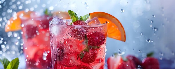 Refreshing summer drink with berries and orange slice.