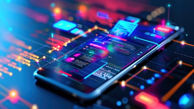Futuristic digital mobile software technology development concept. Generated AI image