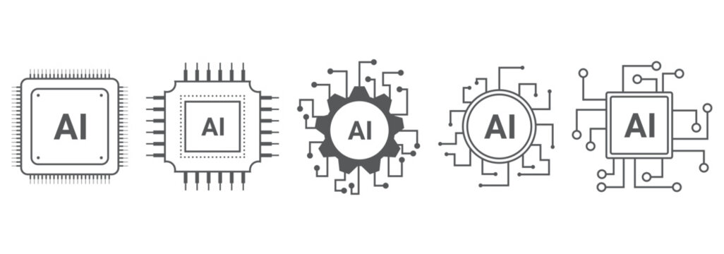 Artificial intelligence icons set. linear, editable line icons for tech and design