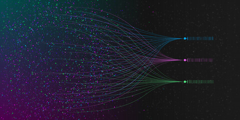 Big data visualization. Illustration of information sorting process. Analusis of big data. Science, technology theme. Vector illustration