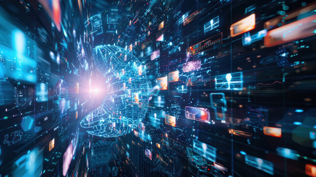 A visual of an AI-driven platform analyzing consumer data to deliver personalized ads across digital channels.