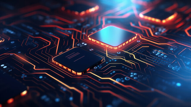 Technology abstract background. Digital line dot and colorful bokeh. Graphic design. Generative ai