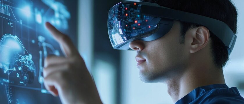 Engineers developing AI powered augmented reality systems for surgical training, advanced medical lab with interactive AR interfaces, High-tech style