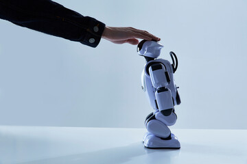 ロボットの頭を撫でる人間の手