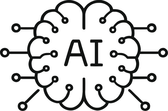 Multimodal AI. multimodal learning icons with digital ai brain background. editable stroke vector illustration