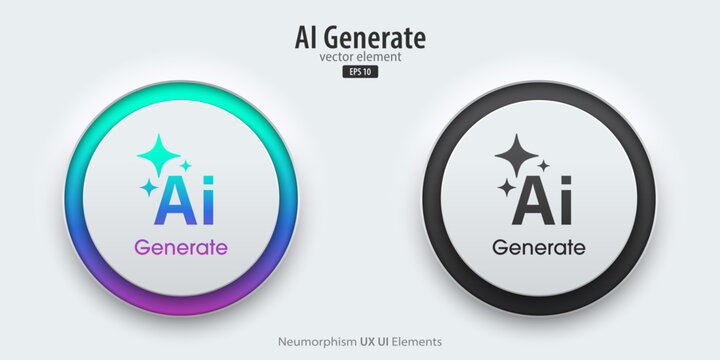 Generate AI button, Artificial Intelligence rainbow colorful Gradient Text icon badge, Generate text Typography and Magic star icon Ai logo. for website or application image generator