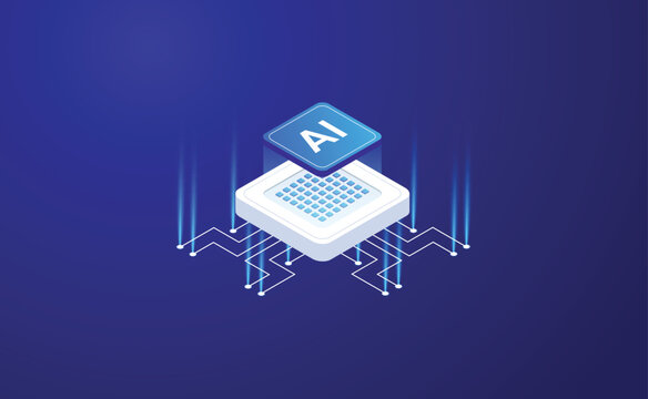 Artificial Intelligence, Isometric Vector banner for AI, Deep Learning, Machine Learning, and Technological Digital Brain Concepts,isometric banner,AI isometric, AI learning machine, ai icon.