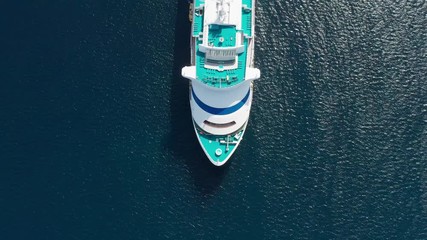 Overhead view above the bow of German cruise ship moored in the port of Esperance, Australia, ferries passengers to the mainland for tours