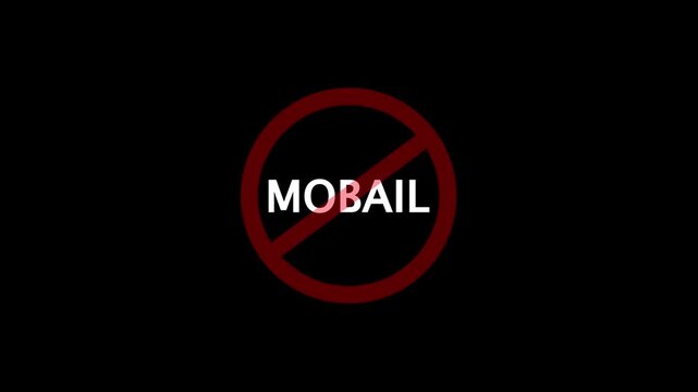 A circular red and black no mob ail text icon animation. stop, not allowed and ban concept animation on black background. 4k video