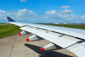Aircraft Airbus A380 Wing at Startup on Tarmac at Airport, Brisbane, Queensland, Australia