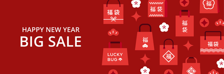 新年セール 福袋デザインバナー ( ベクター 赤 背景イラスト素材 )