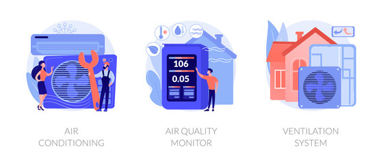 Service and repair of air conditioners. The repairman on the background of a properly functioning air conditioner. illustration in cartoon style