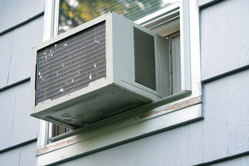 Dirty air conditioning unit before and after cleaning. Concept of home air conditioner repair, service, cleaning and maintenance
