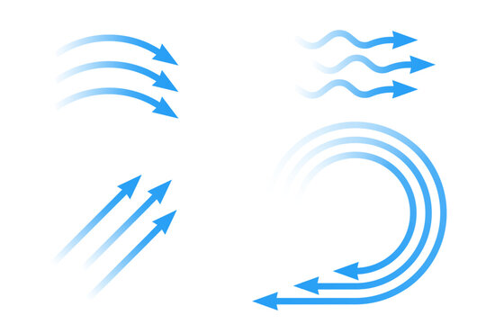 Air flow. Blue arrow showing direction of air movement. Wind direction arrow. Vector illustration isolated on white background.