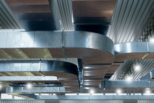 hvac worker install ducted pipe system for ventilation and air conditioning. copy space
