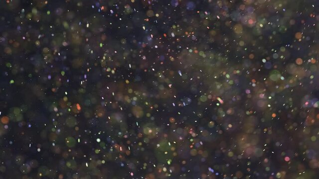 4K motion abstract graphic of particles gold dust float in the air on black background. background gold movement