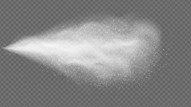 Compressible fluid air rushes from nozzle creating fine spray water, dynamic display. High speed liquid motion, pressure effect, engineering design, abstract splash jet, mist science, energy flow