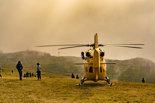 Rescue operation by helicopter to evacuate a wounded
