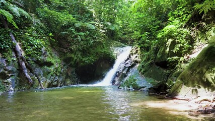 Waterfall in a tropical rainforest in Lombok, Indonesia