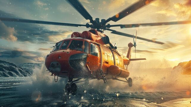 Emergency Rescue Helicopter Touching Down for Landing