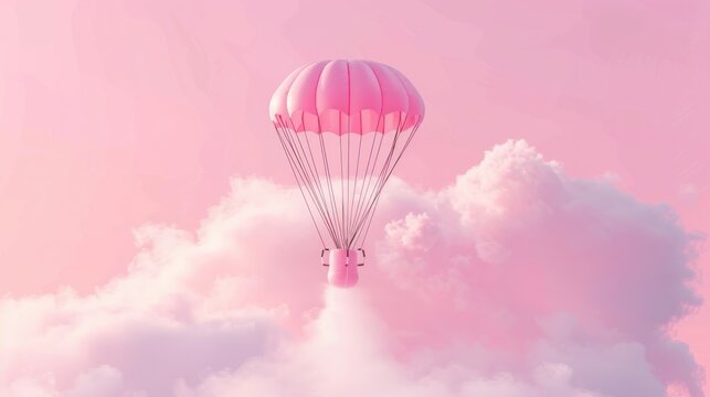 candy-colored parachutes descend playfully through a fluffy, white cloudscape