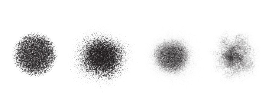Spray circles gradient noise. Dotted rounds with grunge textured effect. Circular stipple brushed shapes. Grainy blurred vector drips.