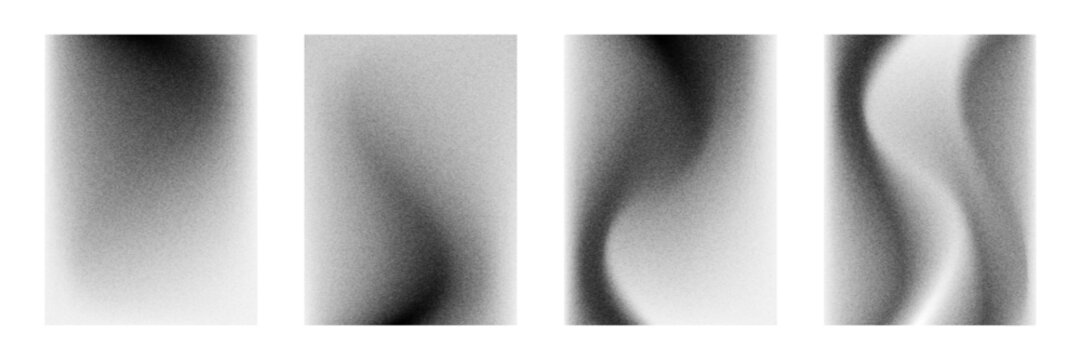 Halftone backgrounds set. Collection of rectangles banner with noise gradient stipple dots pattern. Grunge halftone gradient vector texture set of silver