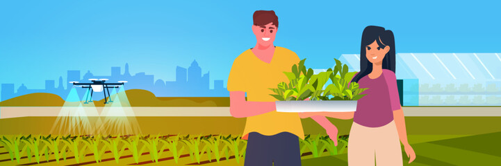 people holding green plants airdrone watering field smart farming responsibility of co2 emission environmental conservation