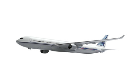 Passenger jet soars in the sky, against a black background