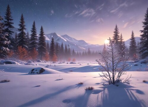 Gentle snowflakes falling on a winter landscape with airgel in the foreground , calm scene, frosty mornings, airgel texture